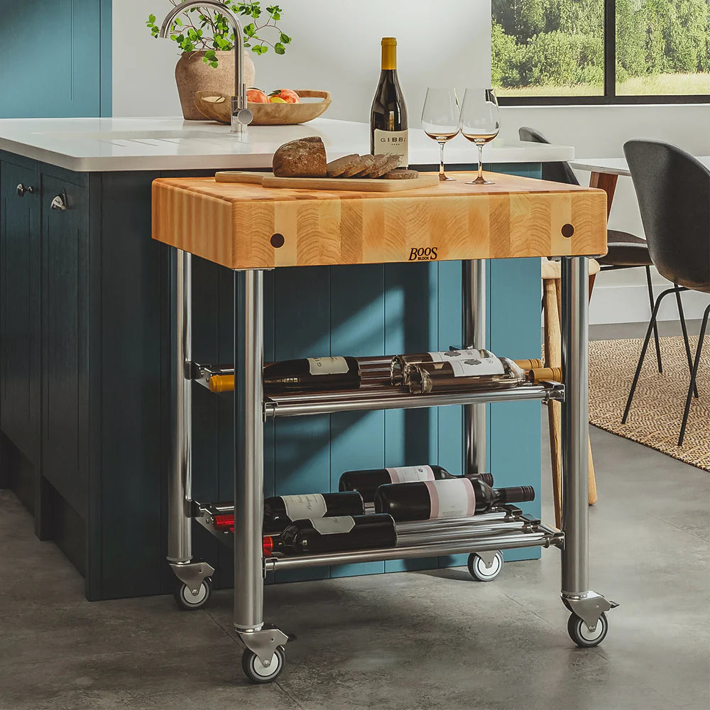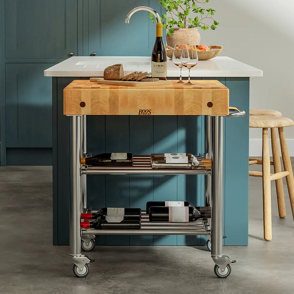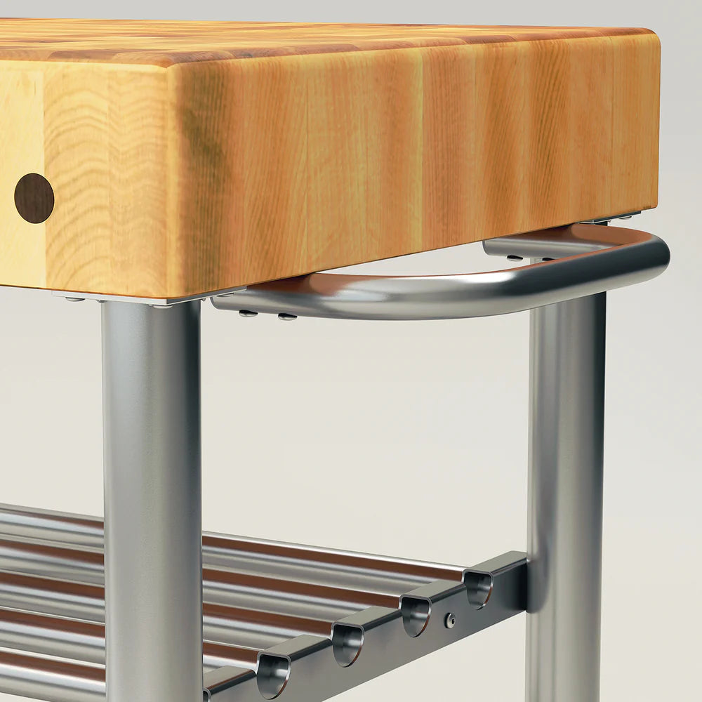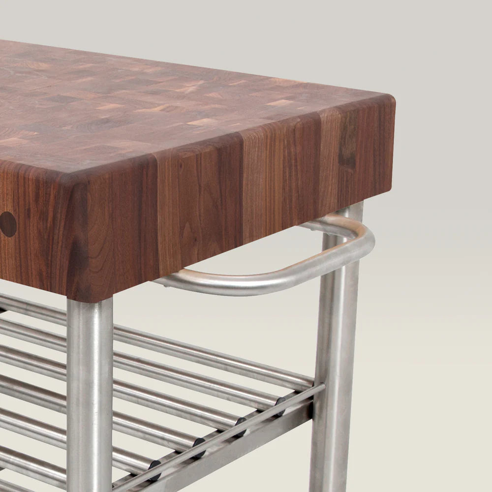 - Boos Board Cream Finish: The wood top is treated with Boos Board Cream, nourishing and protecting the surface, creating a moisture-resistant, food-safe finish that enhances longevity.