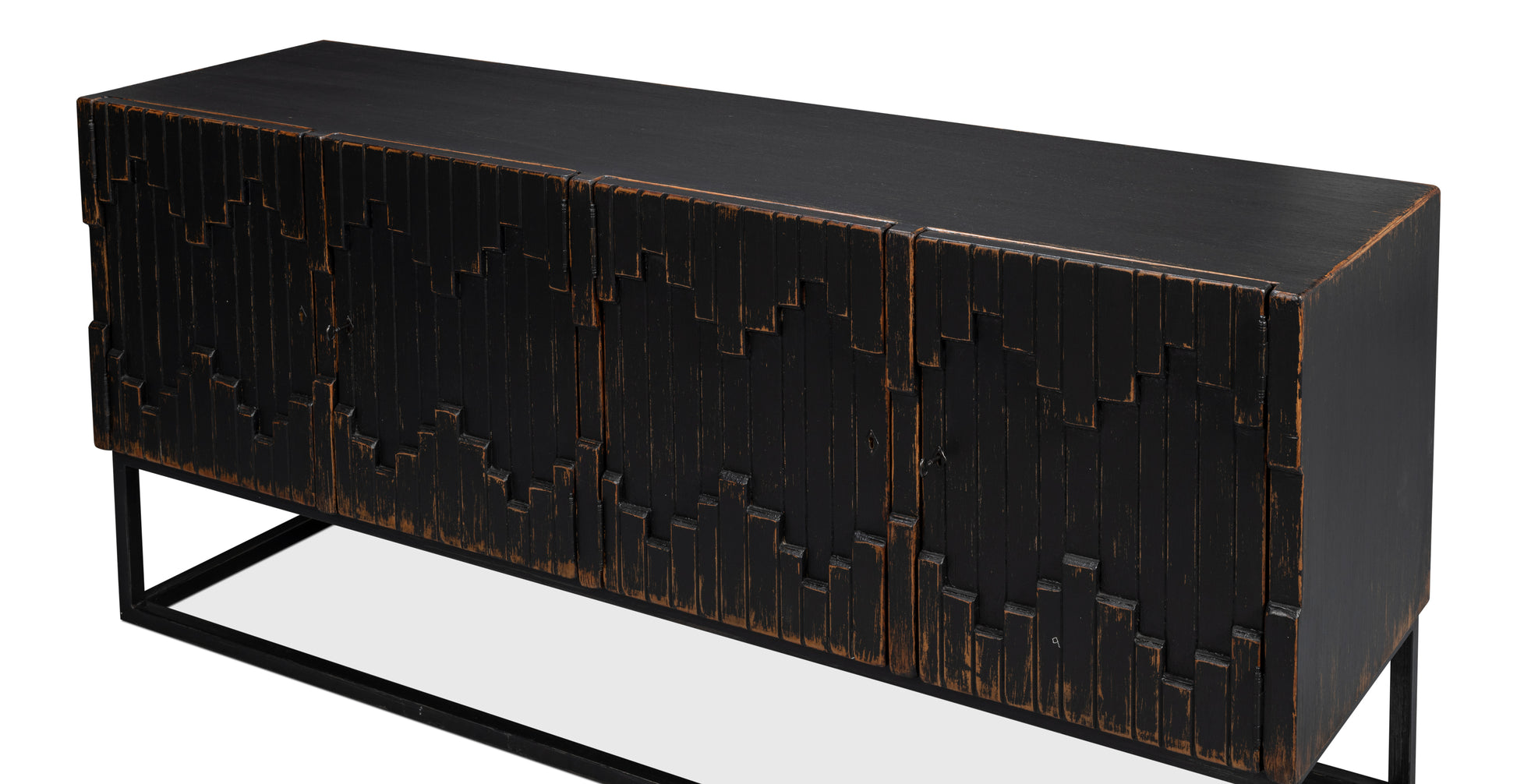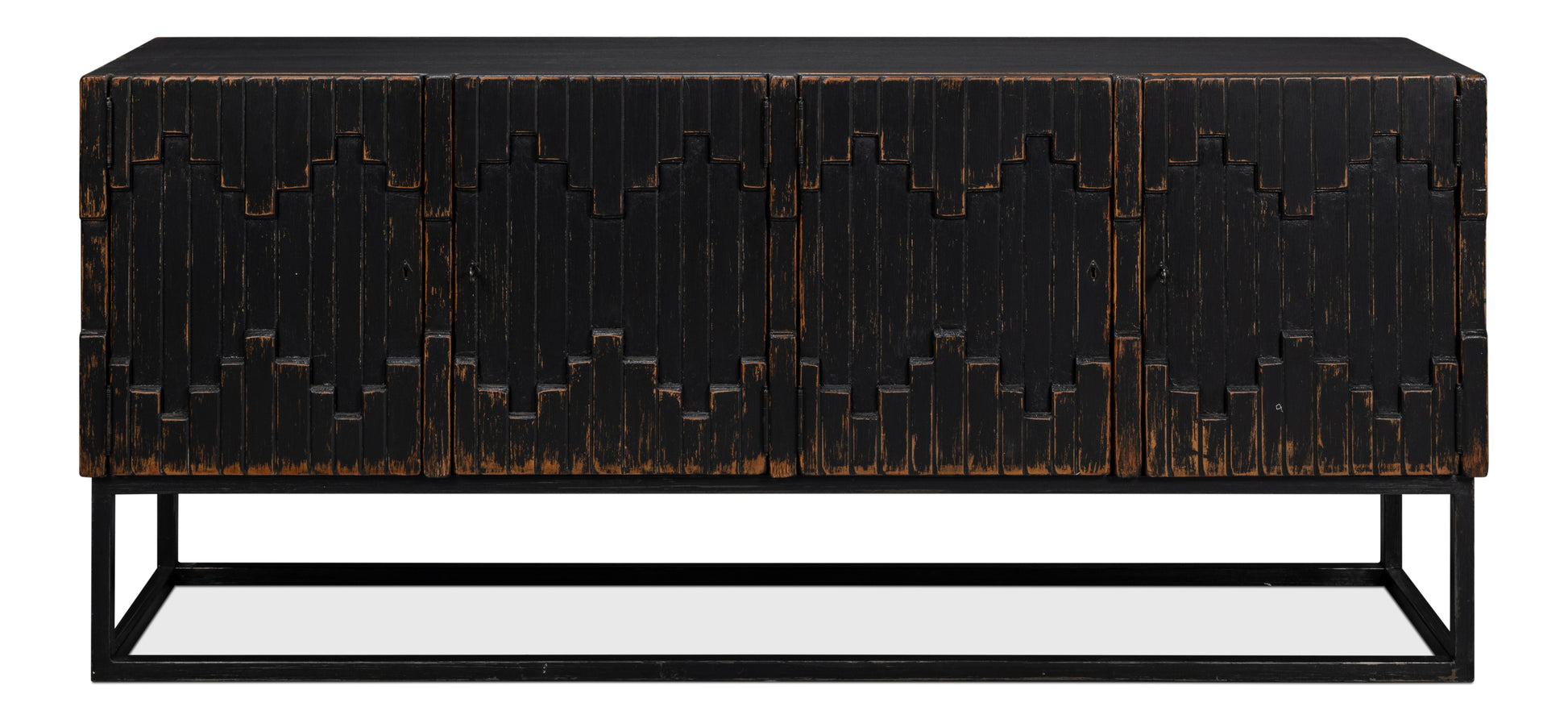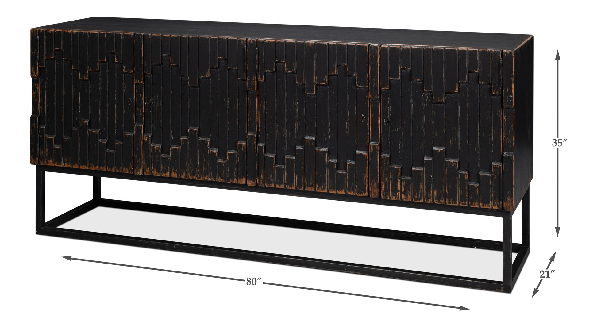 Designed for versatility, the sideboard's interior shelves accommodate a variety of storage needs—from serving pieces and table linens to everyday essentials. The finish adds subtle character while maintaining a refined and classic appearance.