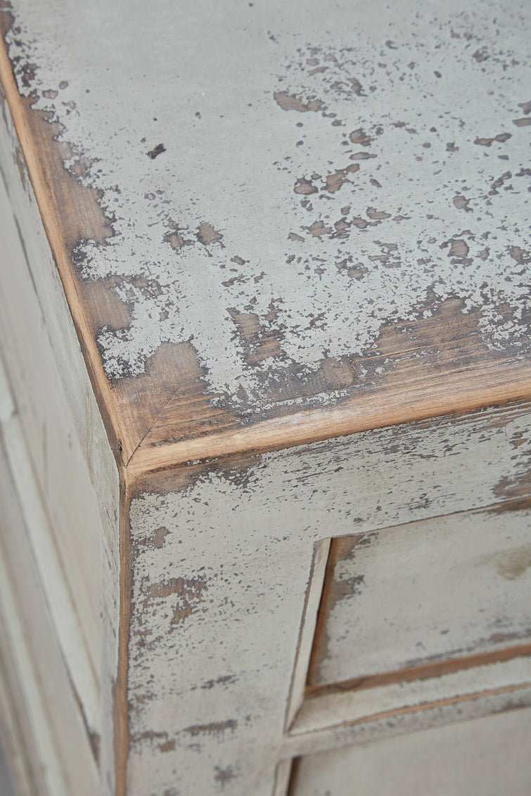 Storage, storage, storage, and tons of style as well! This reclaimed pine sideboard is finished with a soft gray blue paint. The finish is further enhanced with realistic distressing which replicates the ravages of a life well lived. Ring pulls adorn the drawers and doors.