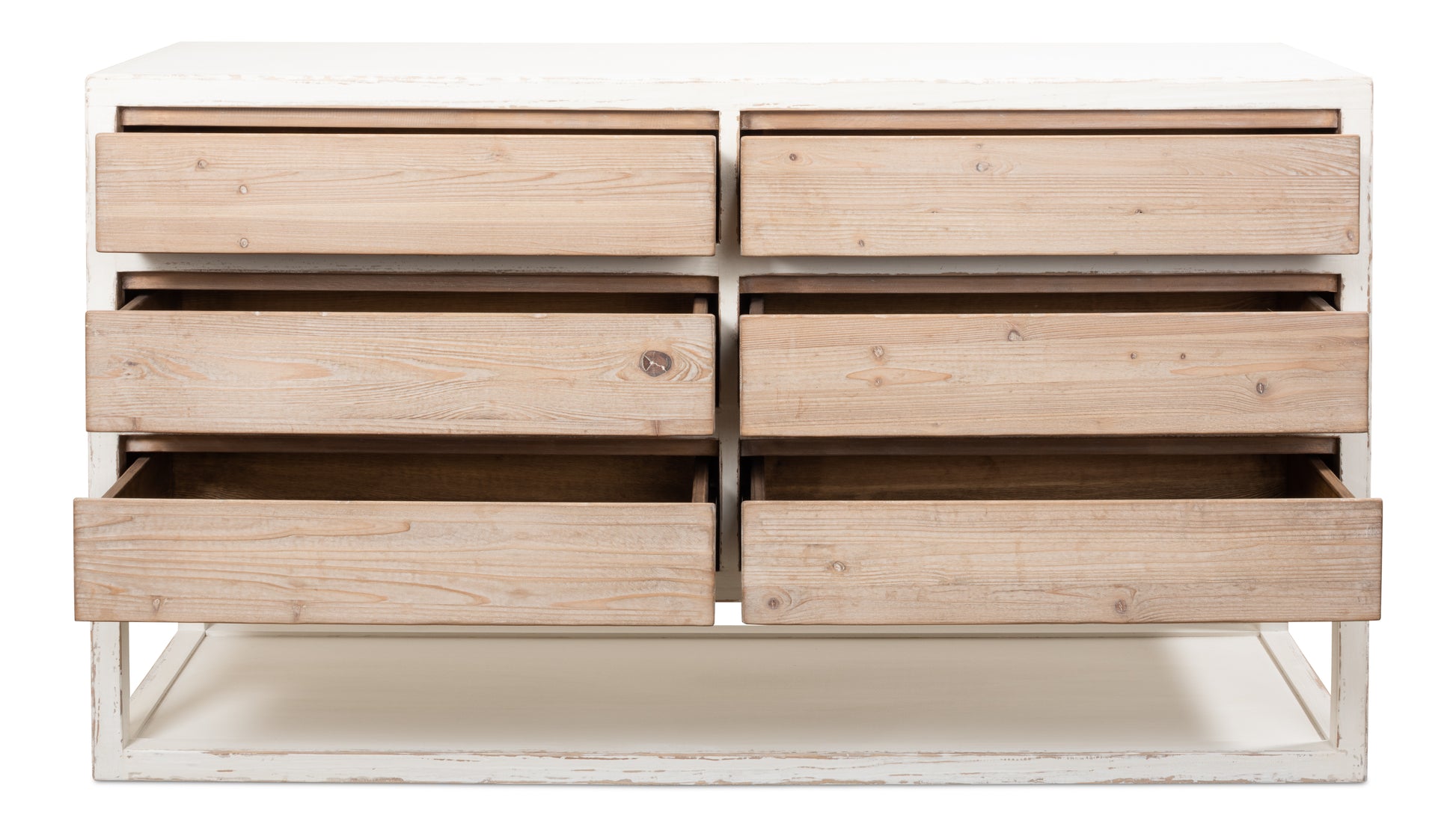 – Design Features: Antique White with Weathered Drawers