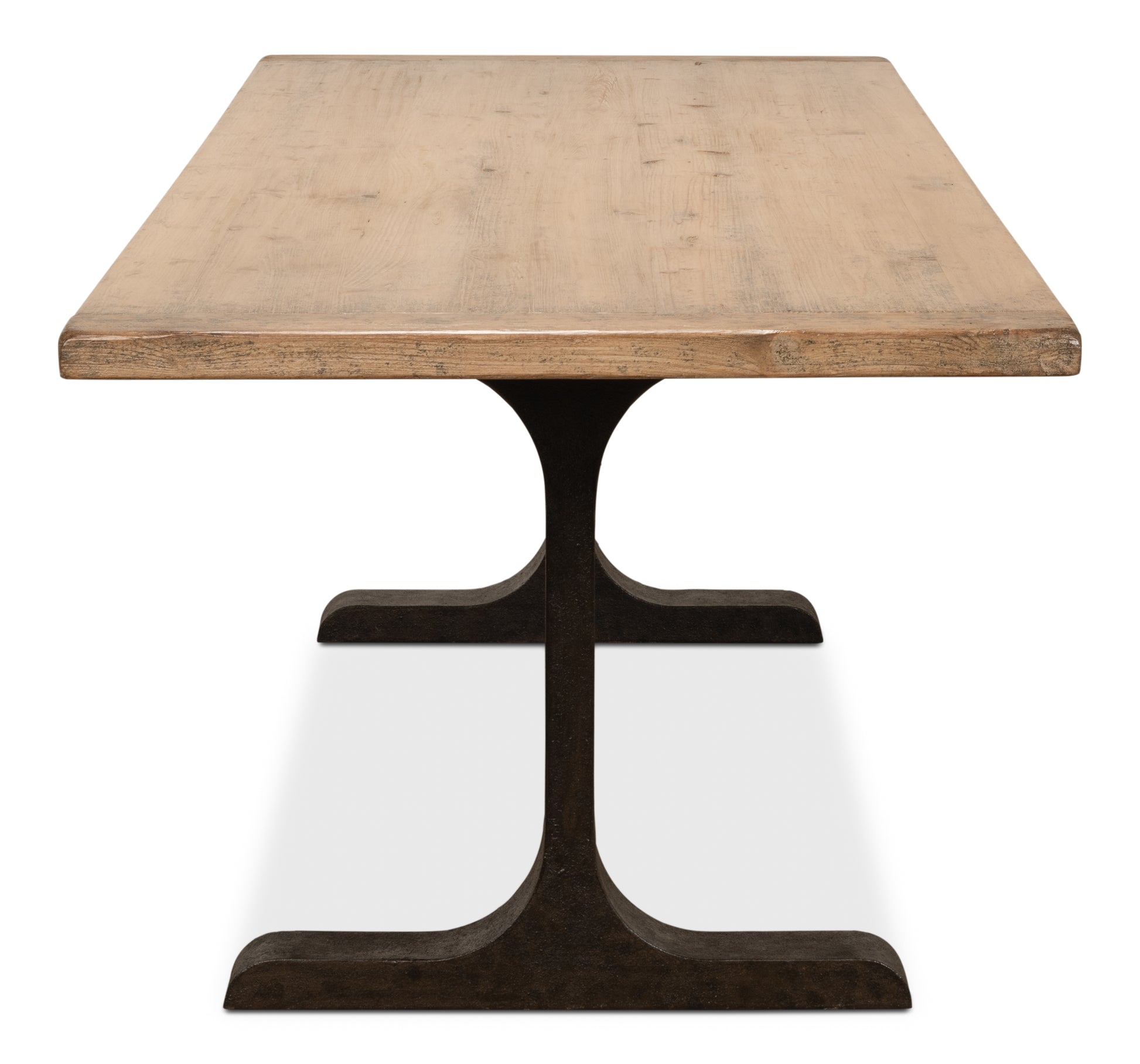 Introducing the Decan Dining Table with Iron Base—a statement piece that brings timeless charm and functional elegance to your home. Crafted from solid pine and iron and finished in a rich palette, this table features a traditional silhouette accent that highlights its refined finish. Its generous proportions and sophisticated finish make it a perfect fit for dining rooms.