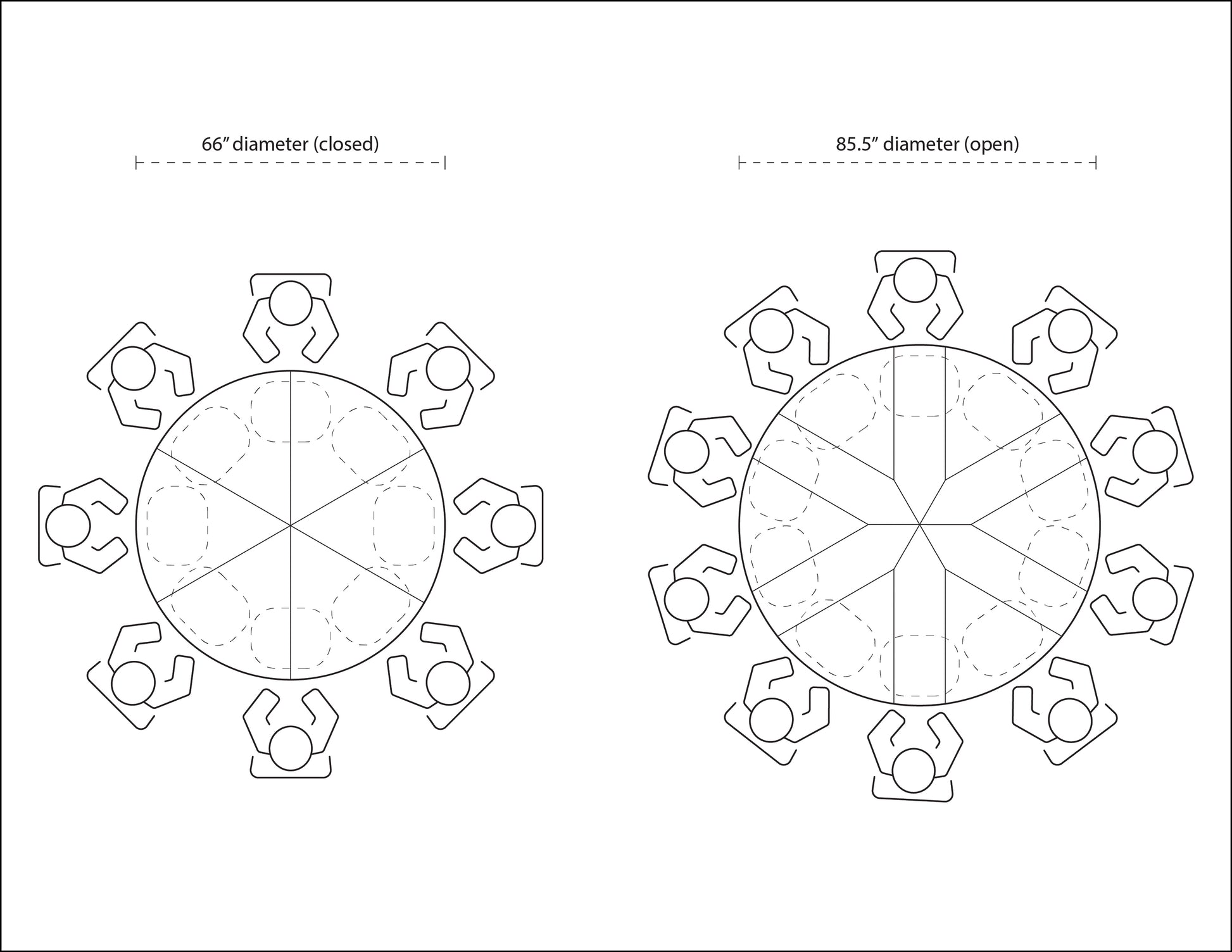 – Dimensions: 66"dia (closed) 85 1/2"dia (open) x 30"h